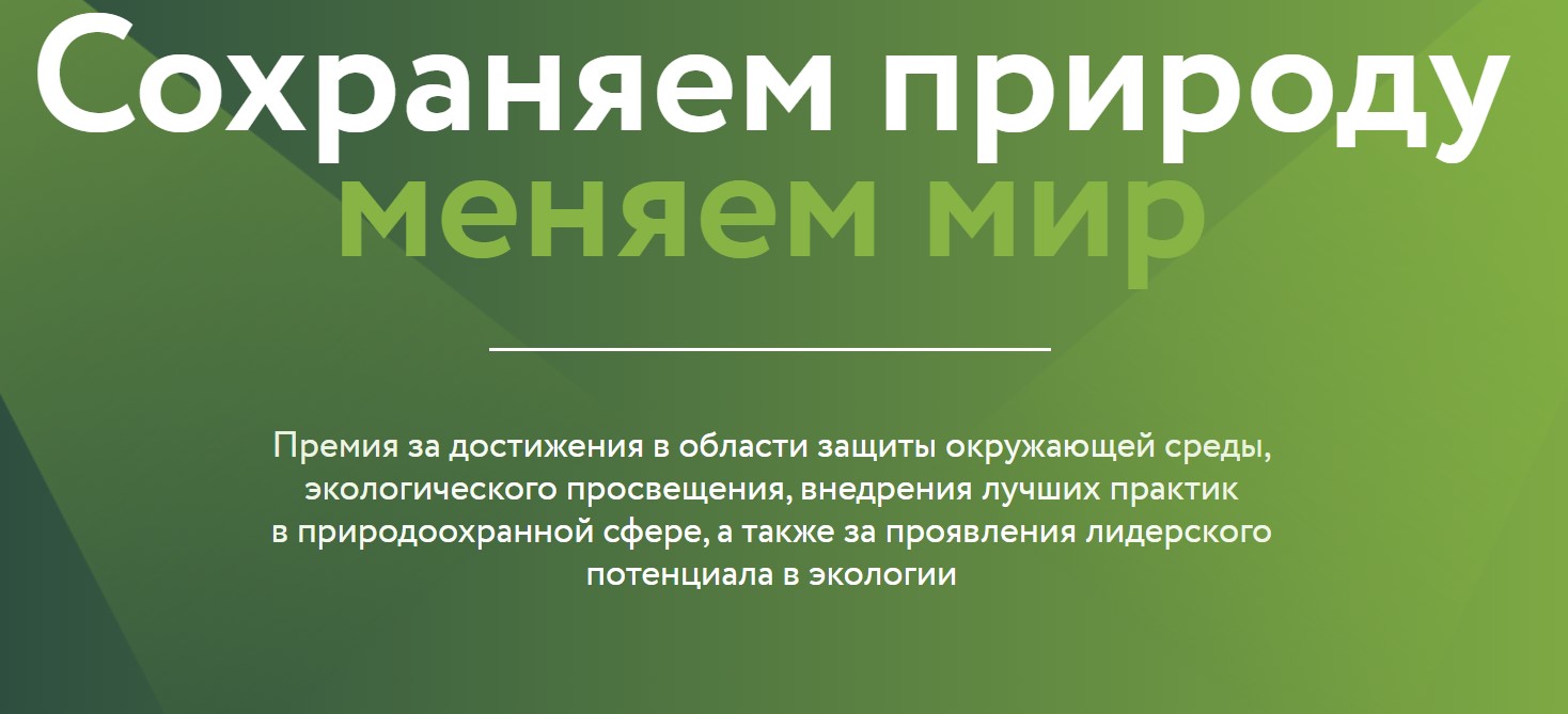 Миссия проекта -  формирование у каждого бережного отношения к природе - основе устойчивого развития. Экологическая премия занимается поддержкой бережного отношения к окружающей среде, продвигает экологические инициативы и технологии, популяризирует лучшие примеры природоохранных практик.