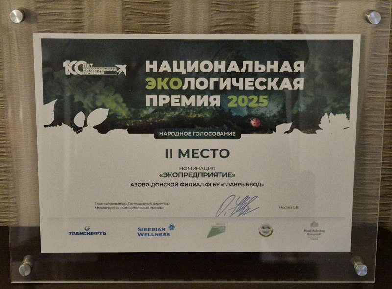 Азово-Донской филиал ФГБУ «Главрыбвод» принял в этом году участие в Национальной экологической премии Комсомольской правды с проектом «Сохранение популяции особо ценных осетровых видов рыб в Азово-Черноморском рыбохозяйственном бассейне» в номинации «ЭкоПредприятие».